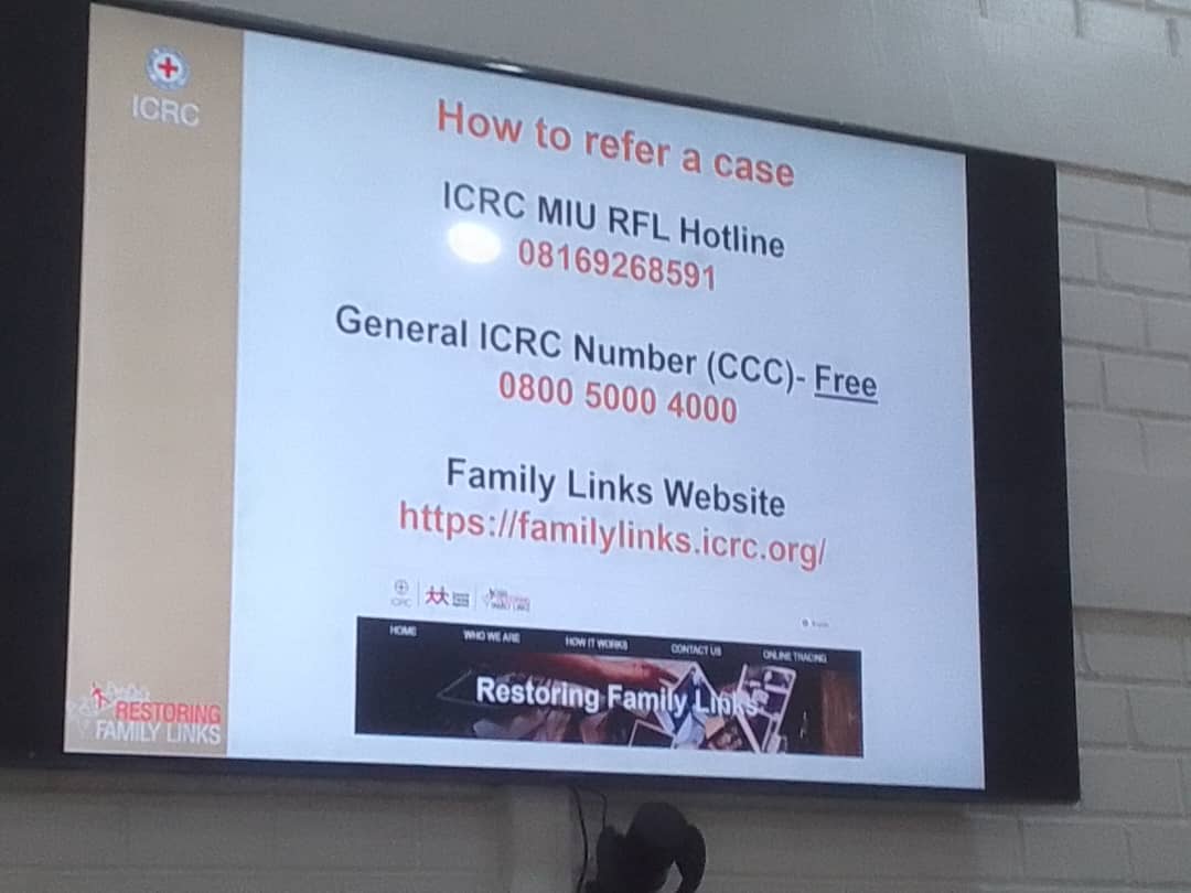 The ICRC said “preventing separations, locating missing people, reconnecting families and supporting them while they search for their loved ones have been very important part of what we do with the Nigerian Red Cross Society in order to relieve the suffering of those affected by conflict. “.