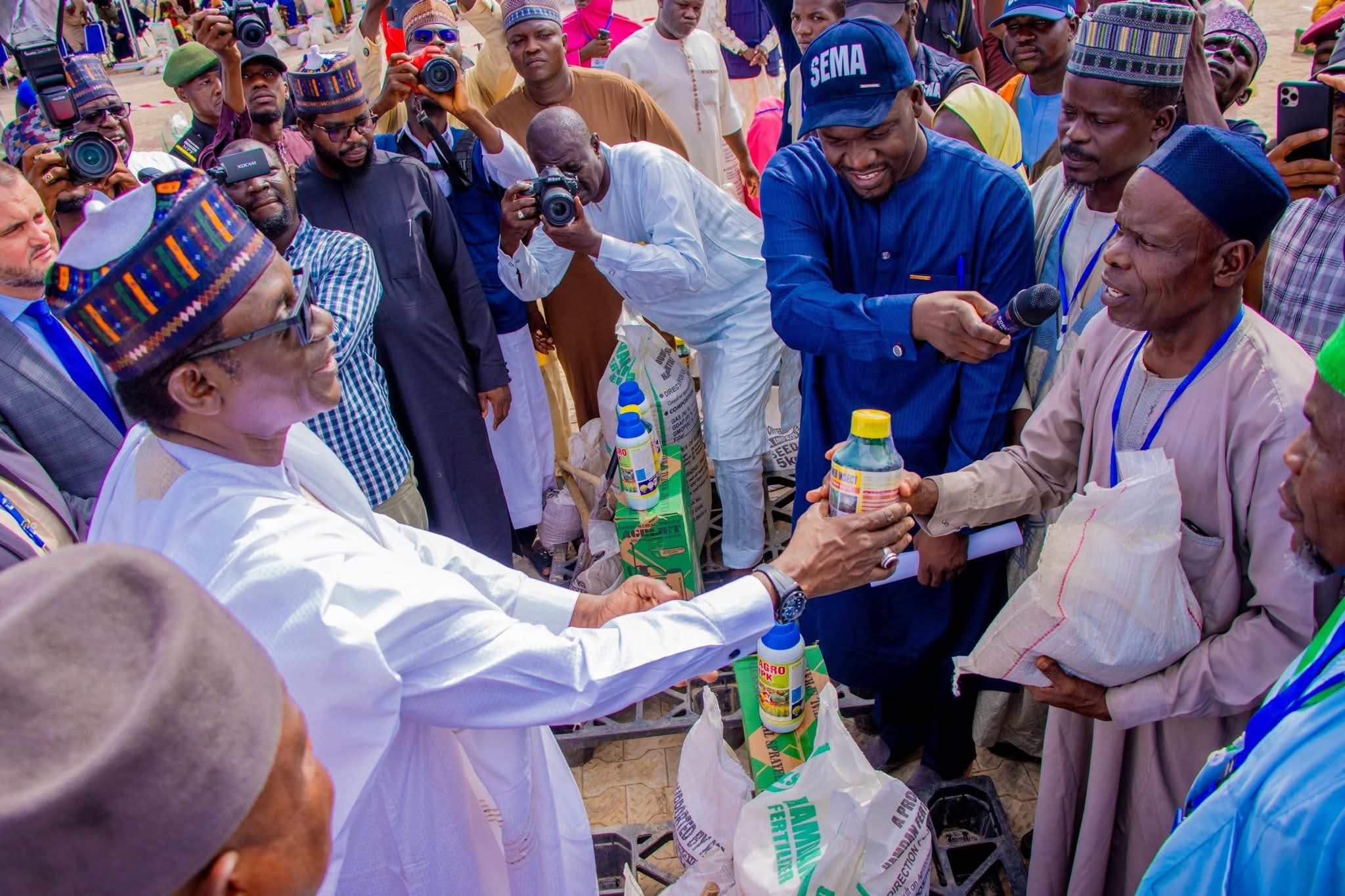 Yobe state Governor, Hon. Mai Mala Buni CON, COMN today distributed farm inputs to 1,000 Mandunari Internally Displaced Persons and their host communities for the 2025 cropping season.