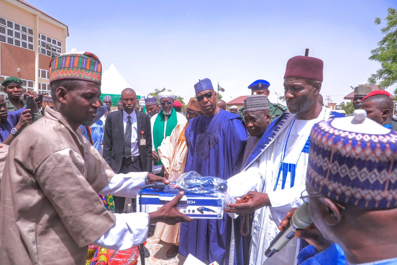 Borno state government has trained and presented working tools to 150 almajirai students trained in vocational skills by his administration..