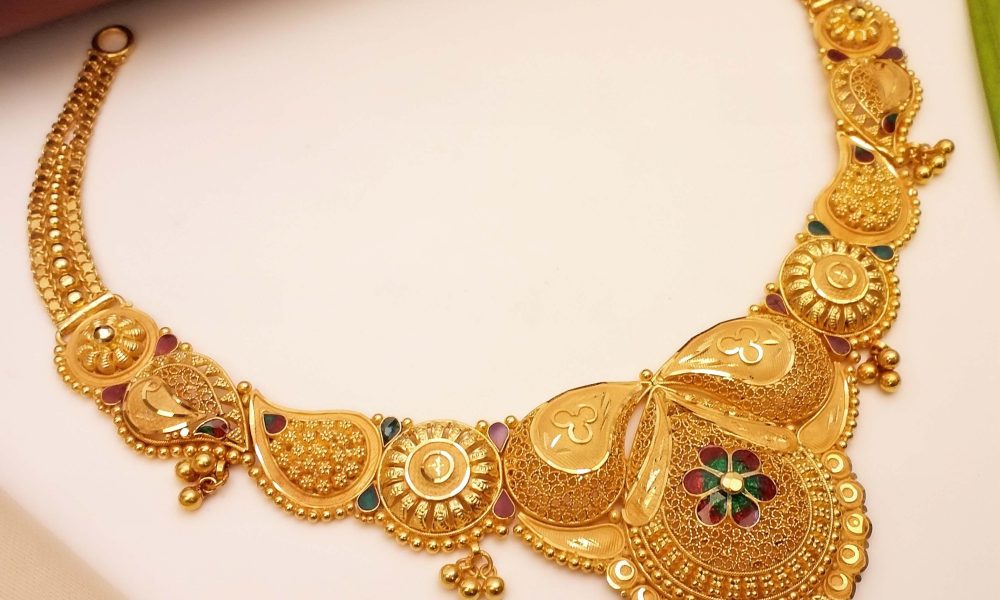 Gold trades near record peak on weak US dollar By Anjana Anil and Sarah Qureshi A salesman shows a gold necklace on display inside a...