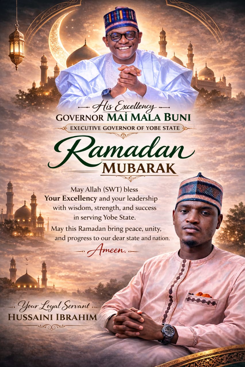 DAMATURU, NIGERIA — A reporter with Daily Hint, Hussaini Ibrahim, has extended warm Ramadan greetings to the Governor of Yobe State, Hon. (Dr.) Mai Mala Buni, CON, wishing him a spiritually fulfilling and peaceful holy month.