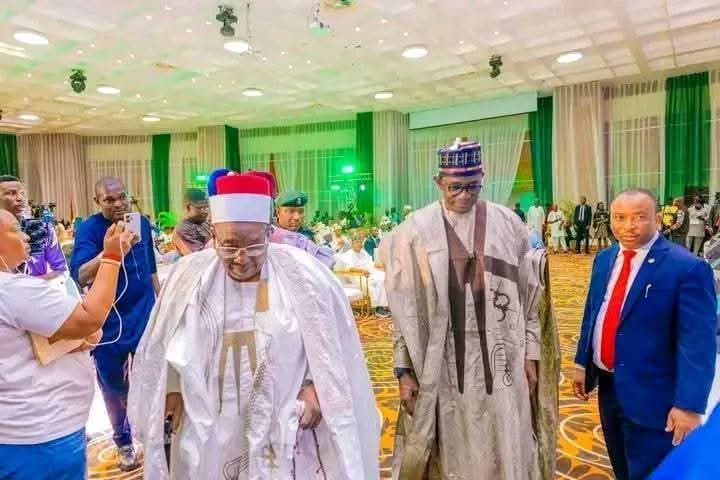 When Governor Mai Mala Buni of Yobe State saw this, he stood up immediately, walked to where the Shehu of Borno (His Royal Highness Abubakar Ibn Umar Garbai El-Kanemi) was seated, knelt down to greet him with full respect, held his hand, and personally took him to the high table.