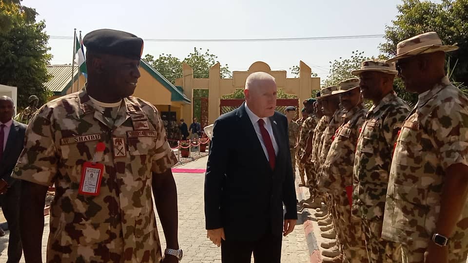 The UK Minister ” To see how best different exercises can be undertaken, how best different tactics can be used. And, General, I have to say, training instructors to then leave here to be instructors themselves is a very successful project and something which works exceedingly well. And I know it’s something that has gone from strength to strength. Nigeria’s leadership, sometimes not without difficulty, within the MNJTF, and the work that you’ve done there and continue to do, some of that is challenging”,