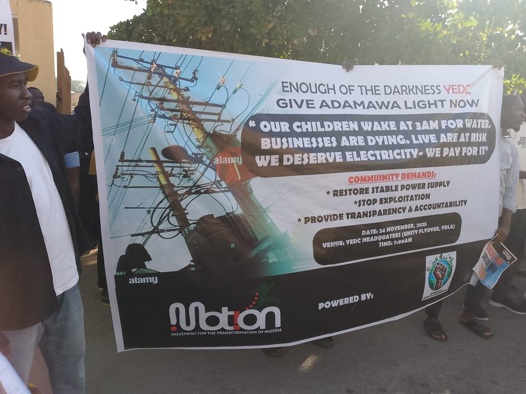 The activities of the Yola Electricity Distribution Company,YEDC has been forcefully grounded by members of the Movement for the transformation of Nigeria (Motion) over epileptic electricity supply in Adamawa state.